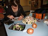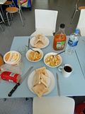 Heute haben wir noch ein super Schnaeppchen geschlagen. Im Supermarkt wurde heute ausgemistet und alles was kurz vorm Ablaufen war wurde verramscht. Wir haben massig frisches Gemüse, was noch 4 Tage haltbar ist, für wesentlich billiger bekommen, unser Abendessen heute kostete ganze 1,75$ pro Person, was knapp 1,20€ sind. Normal geben wir so um die 3$ pro Abendessen aus. Größtenteils vegetarisch, Fleisch kann man sich hier eigentlich nicht leisten. Eine 100gr. Packung Salami kostet 5$, das sind 3,50€ und ein drittel meines potenziellen Stundenlohnes. Aber es gibt eine preiswerte Fleischwurst, die ist völlig ausreichend für morgens.