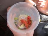 Da wir doch recht erschöpft von den vergangenen Tagen waren, haben wir den größten Teil des Weges einfach verschlafen, bis wir geweckt wurden, da wir noch einmal zusammen Mittagessen haben würden. Diesmal gab es Wraps mit dem Chili Con Carne vom ersten Abend, frisch gekochten Hühnchen-Reis irgendwas und Salat, Gemüse, etc.