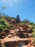 Nach einer kleinen Einweisung unseres Guides Dom (eigentlich Domenico, aber australisch auf eine Silbe abgekürzt ...) ging es dann auch schon los mit der ersten und härtesten Wanderung unserer Tour. Wir konnten uns entscheiden ob wir den kurzen Weg in den Canyon hineingehen oder den längeren um den Canyon herumgehen. Tatsächlich haben sich 4 Personen für den kürzeren Weg entschieden.