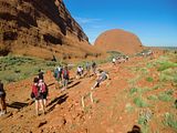 Kata Tjuta ist ein Gebirge, welches aus 36 einzelnen Bergen besteht und mit Tälern, Ebenen und Flüssen durchzogen ist. Die Berge bestehen aus vielen kleinen, einzelnen Steinen, deren Lücken mit Sand gefüllt sind und über Millionen von Jahren zu einem großen Klotz zusammengepresst wurden. Für die Aborigines ist es eine heilige Gegend die ausschließlich Männer betreten durften und über deren Geschichten nur Männer informiert wurden, die das Gebiet auch betreten durften. Im Gegensatz zu kurzen, einfachen Geschichten für Kinder sind solche Geschichten wesentlich umfangreicher, komplexer und schwerer zu verstehen bzw. zu deuten.