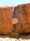 Er hat uns dann erklärt, dass dies ein Stein ist, der schon tausende Jahre hier liegt und von den Aboriginejägern dazu benutzt wurde, ihre Speere noch einmal zu schärfen, bevor sie im Canyon auf Tiere stießen. Die Speere bestanden jedoch nur aus Holz und mussten jeweils nur 2-3 mal am Stein entlang geschliffen werden, so dass eine Menge Jäger mit Speeren über einen sehr langen Zeitraum immer wieder hier herkommen musste, um solch einen Spalt im Stein zu hinterlassen, was schon ziemlich beeindruckend ist.