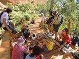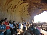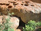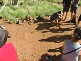 Während des Spazierganges hat Dom uns die Bedeutung des Berges für die Aborigines erklärt, wodurch man den Berg und seine Höhlen mit ganz anderen Augen wahrnahm. Im Nachhinein kann man sagen, dass Dom schon sehr engagiert war, uns die Kultur und das Leben der Aborigine näher zu bringen und uns zu zeigen, dass nicht alle so sind, wie in Alice Springs. An dieser Stelle hat er uns auch erklärt, weshalb die Aborigines in Alice Springs so stinken. Das liegt daran, dass sie früher nur nackig rumgelaufen sind und sich nie gewaschen haben, da sonst die Wasserlöcher nach Mensch gerochen hätten und die Tiere nicht mehr dorthin gekommen wären.