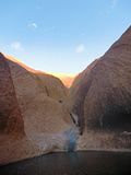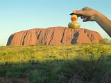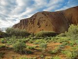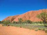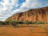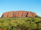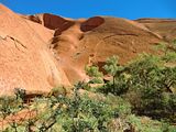 Aus der Nähe sah der Berg ganz anders aus, als man ihn sonst vor Augen hat. Normalerweise sieht man nur ein Bild vom Sonnenuntergang, wo der Berg im knallen Rot strahlt, in Wirklichkeit ist er jedoch nicht mal annähernd wie ein Brotlaib geformt, sondern hat beinahe einen dreieckigen Grundriss, er ist auch viel zerklüfteter und voller Höhlen.
