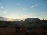 Nach diesem kurzen Abstecher sind wir dann zur Uluru Sunset Viewing Area gefahren, wo es jeden Abend zu einer riesigen Versammlung der verschiedensten Reisegruppen kommt, die Dom liebevoll Zirkus nennt. Wir hatten dort ein wenig Freizeit und konnten Unmengen an Bildern vom Sonnenuntergang machen, der hinter uns stattfand und den Berg so immer rötlicher werden ließ. Es war alles in allem nicht ganz so spektakulär, wie man es sich vorstellt und wie es auf den Postkarten immer aussieht.